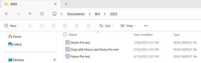 Inside the Drop Tests folder, ensure the following items are present: