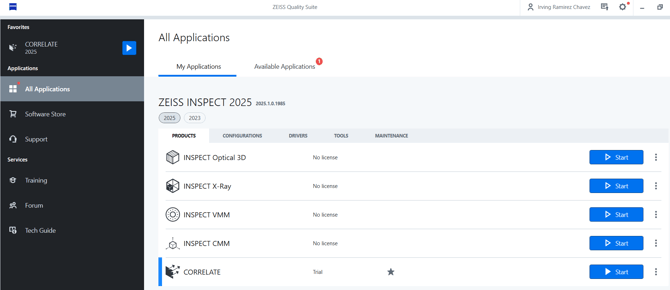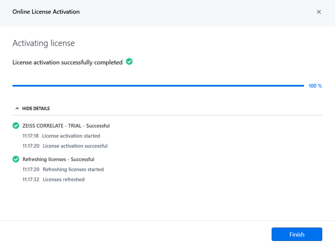 Use the following steps to activate a free or professional trial license for Zeiss Correlate.